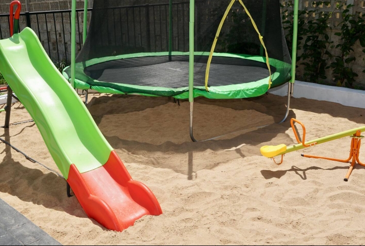 -Zona de relax: dispone de una fuente con bancos y hamacas de tela en sombra para lectura o descanso.