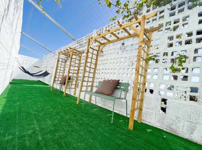 Podrás disfrutar también de la zona común que cuenta con tu propia barbacoa, mesa comedor y pérgola, todo asignado a cada propiedad para que puedas disfrutar de ello en todo momento.