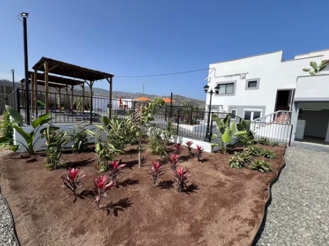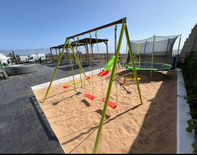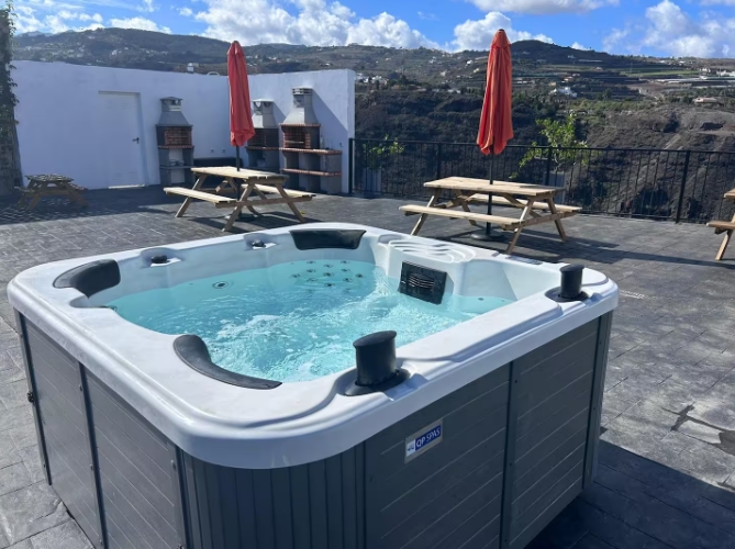 -Solarium 1 pérgola y 1 barbacoa asignada por vivienda más 2 jacuzzis de uso común, parque infantil y zona de mesas. Vistas a la montaña y al jardín.