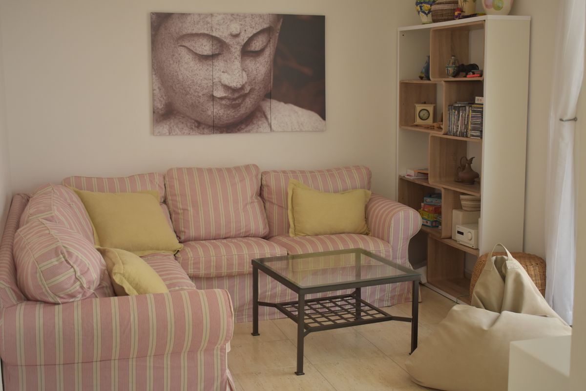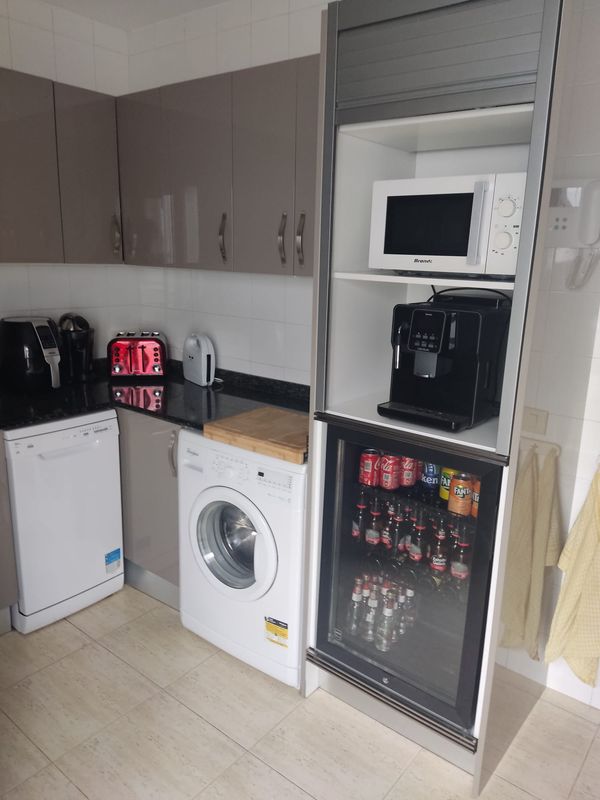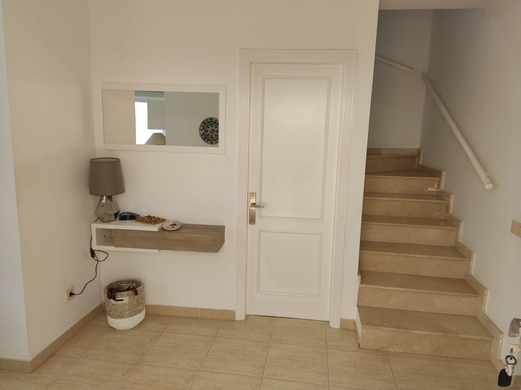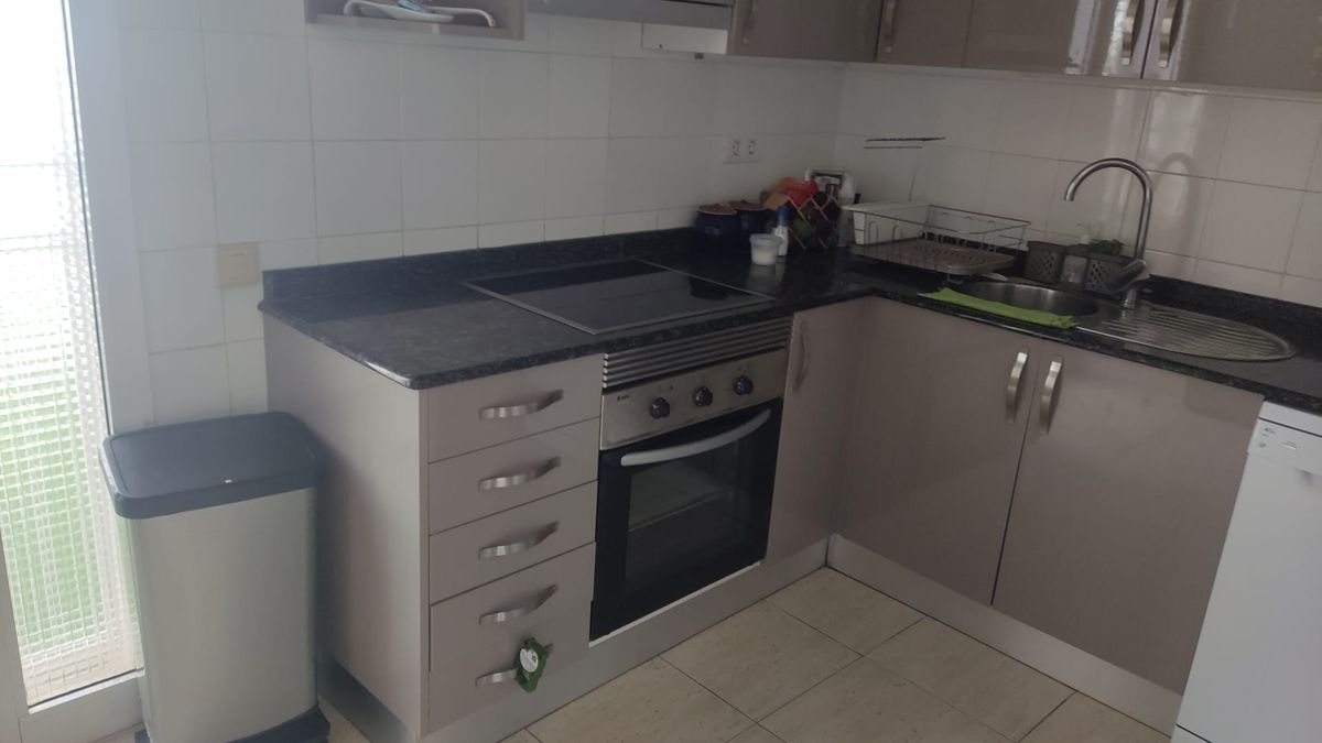 Un pequeño aseo, Hall/recibidor, cocina completamente equipada, con todos los electrodomésticos (vitro, horno, microondas, cafetera, Frigorífico, lavavajillas y lavadora). Sala TV, Salón comedor. En total 70 m2 aprox.