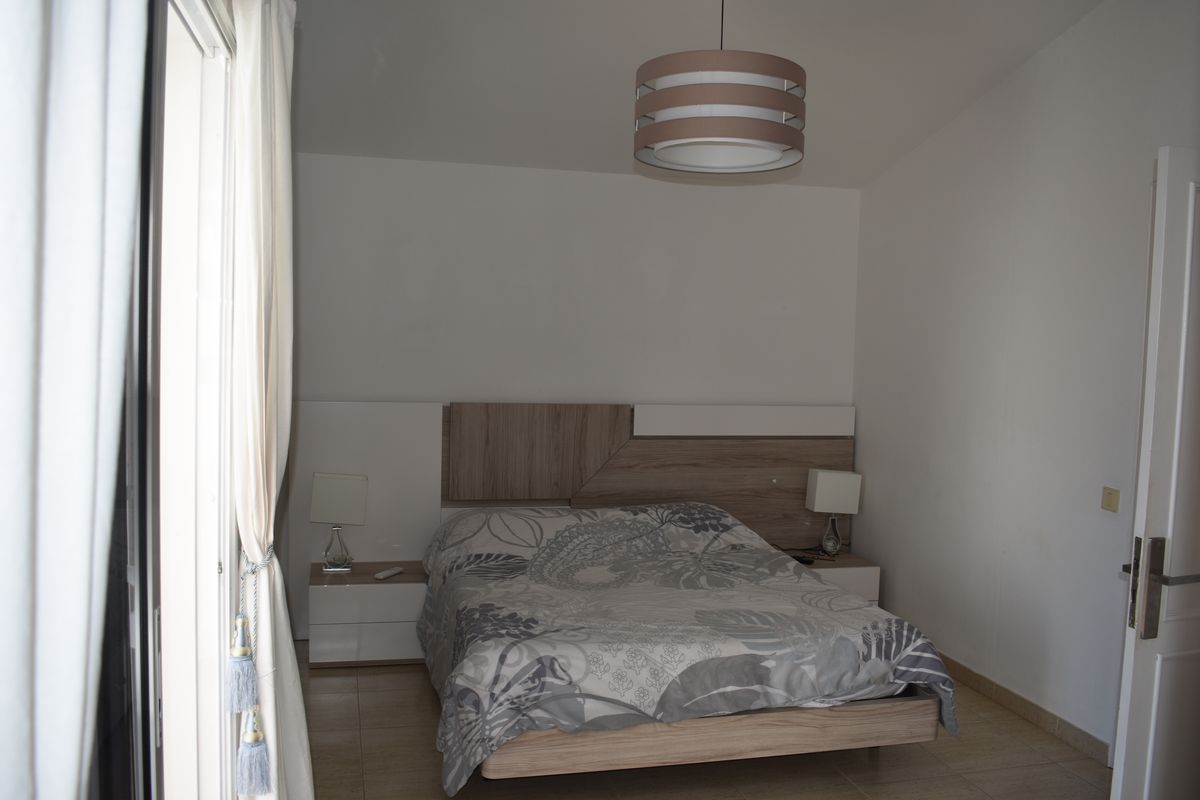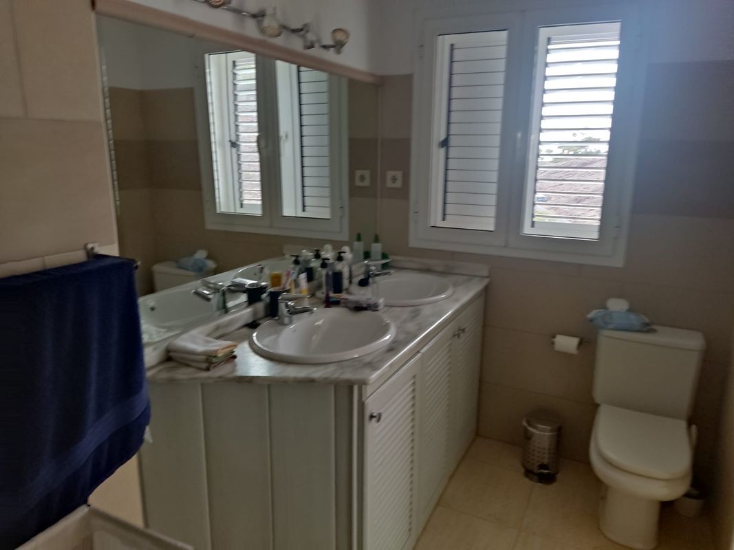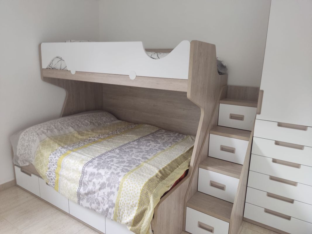 3 Dormitorios, 2 con cama doble y balcón y el tercero con cama litera, la cama de abajo doble. Dos baños, uno en el dormitorio principal.