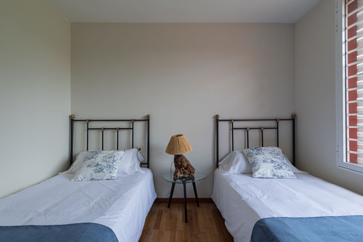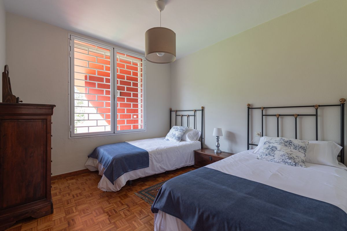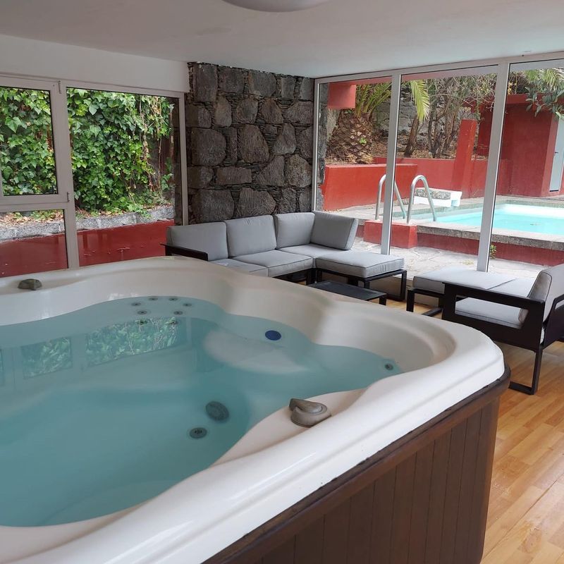 Toda la casa en una misma planta consta de 4 dormitorios, dos de ellos con cama de matrimonio y los otros dos con dos camas individuales. Espacioso salón con chimenea y vistas a la montaña. Dos baños y un aseo. Cuarto lavadora y secadora que cuenta con un congelador. Piscina privada de la que poder disfrutar, cerca habitación acristalada con jacuzzi que conecta con la sauna y un baño. Terraza con fantásticas vistas para desayunos y almuerzos. Zona de piscina con jardín amplio y hermosas vistas. Disponemos de jacuzzi gratis y sauna de pago.
