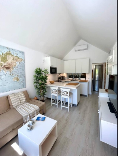 En su interior, con un diseño moderno y luminoso, cuenta con todas las comodidades como horno, purificador de agua, lavavajillas, aire acondicionado, WIFI fibra óptica, lavadora, incluido un vinoteca para conservar tus vinos preferidos.
