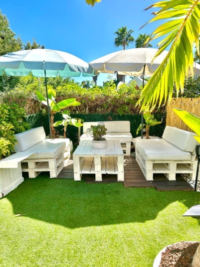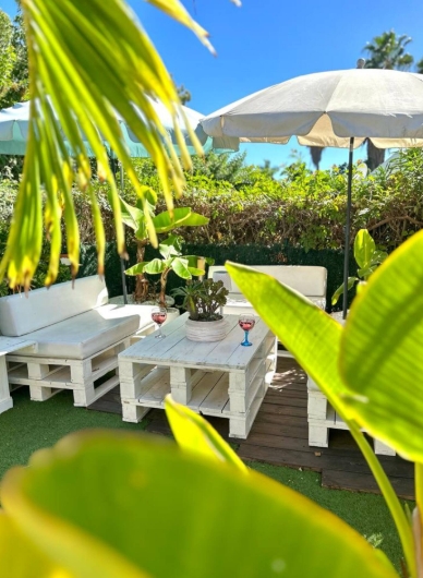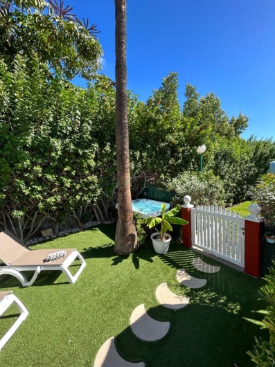 Cuenta con un amplio jardín privado con Jacuzzi para pasar buenos ratos de relax entre burbujas, zona chill out donde tomar tu copa preferida entre conversaciones, barbacoa para cocinar tu plato preferido con aromas a madera, y hamacas donde disfrutar del sol canario.