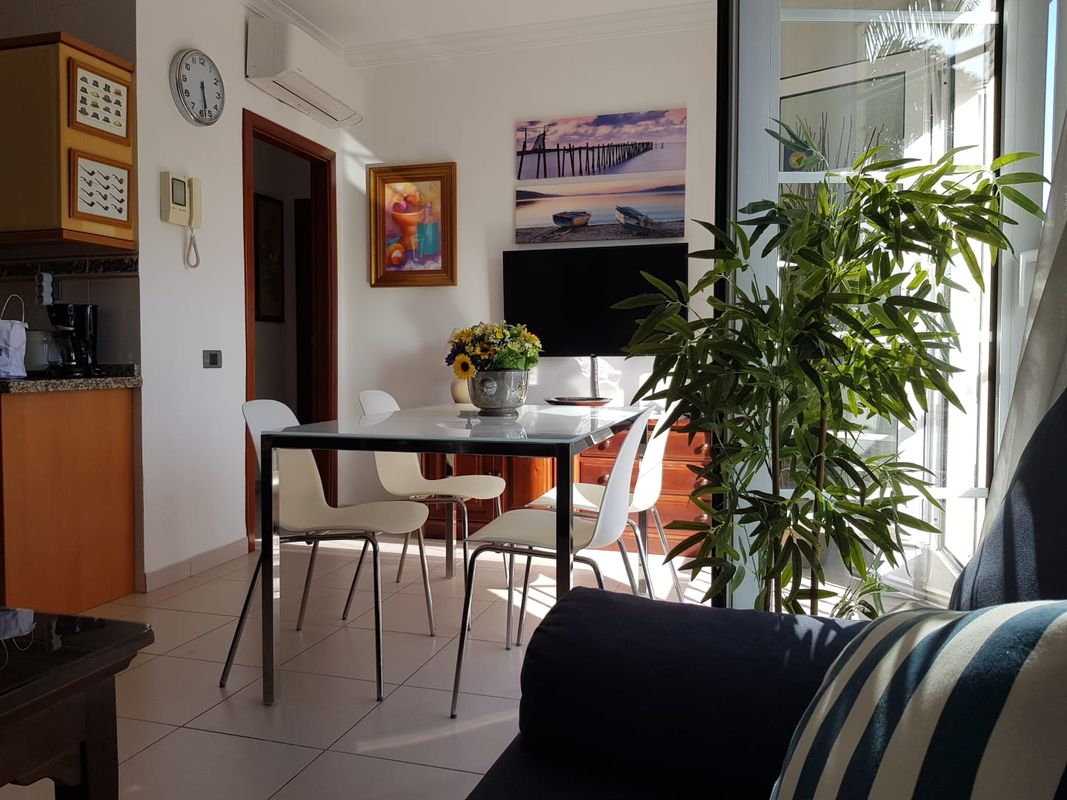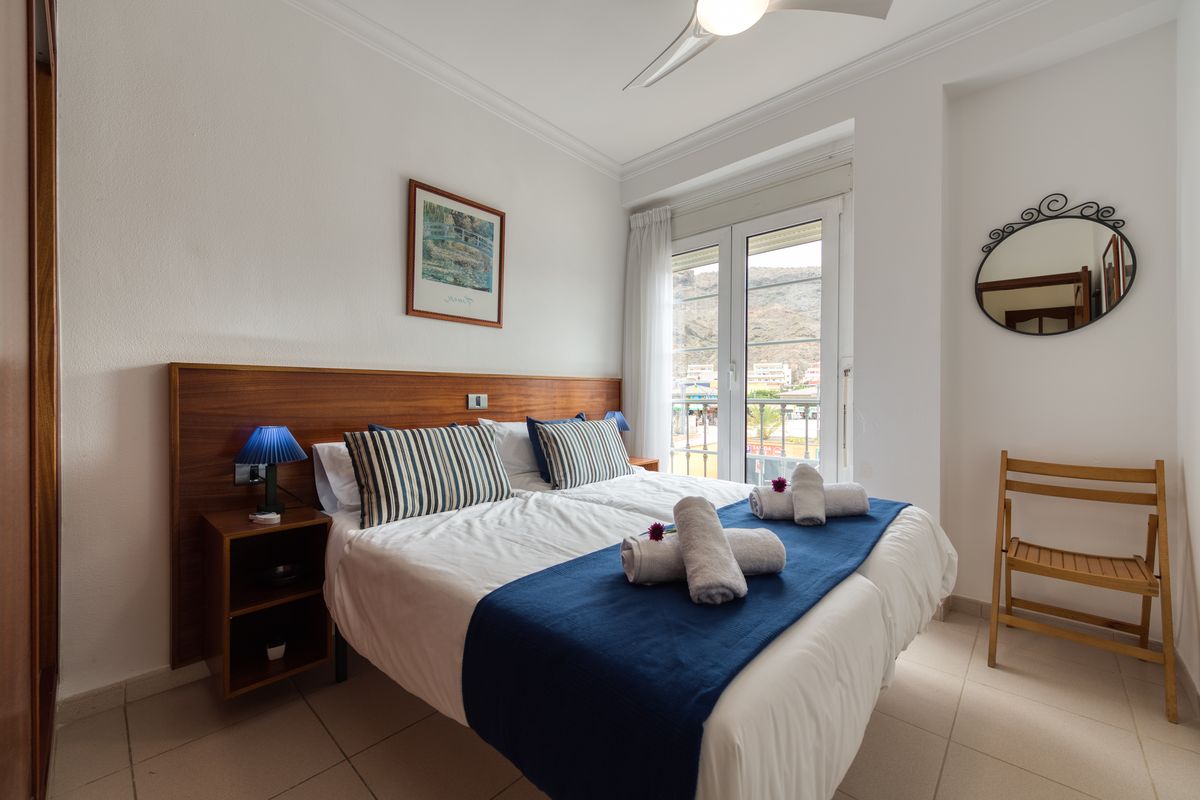 Acogedor alojamiento de dos dormitorios con balcón, totalmente exterior y orientado al Este y al Sur, enclavado en un edificio de alto standing, Residencial “La Fuente”. Se encuentra a escasos metros de la Playa (dos minutos a pie). Su privilegiado emplazamiento en el Puerto de Mogán, Gran Canaria, goza de un inigualable clima, un entorno de gran belleza y al mismo tiempo es un lugar apacible donde pasar sus días de descanso.